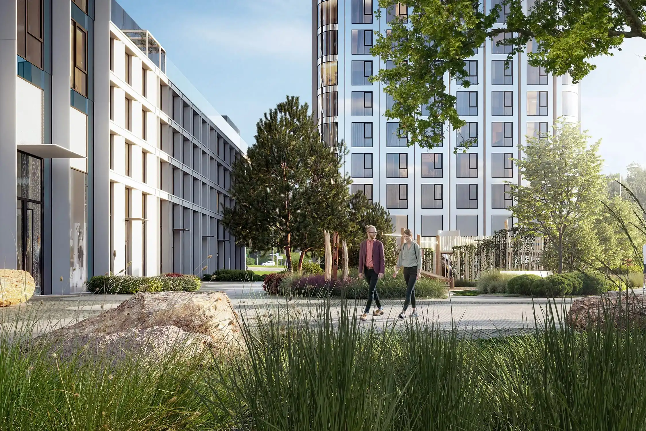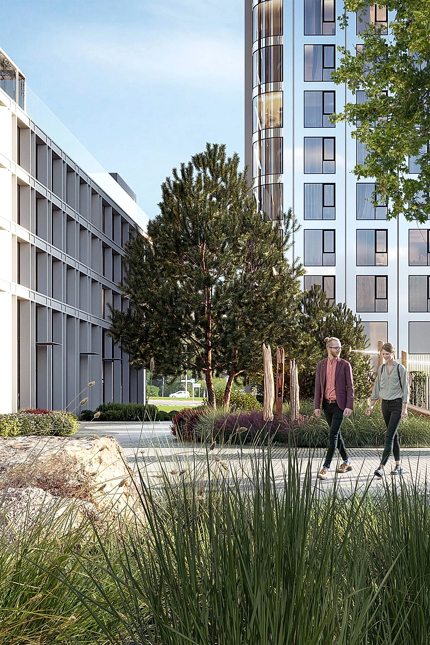 Здания спроектированы архитектурным бюро СПИЧ. Престижный жилой комплекс расположен на набережной Алматы-реки. Именно она стала отправной точкой в создании Концепции Pin-Up Мы спроектировали благоустройство в форме волны, символизирующей реку, и усилили идею использованием натуральных материалов в тёплых оттенках. Озеленение территории, подобно объятиям, окружает и оживляет зоны комплекса.