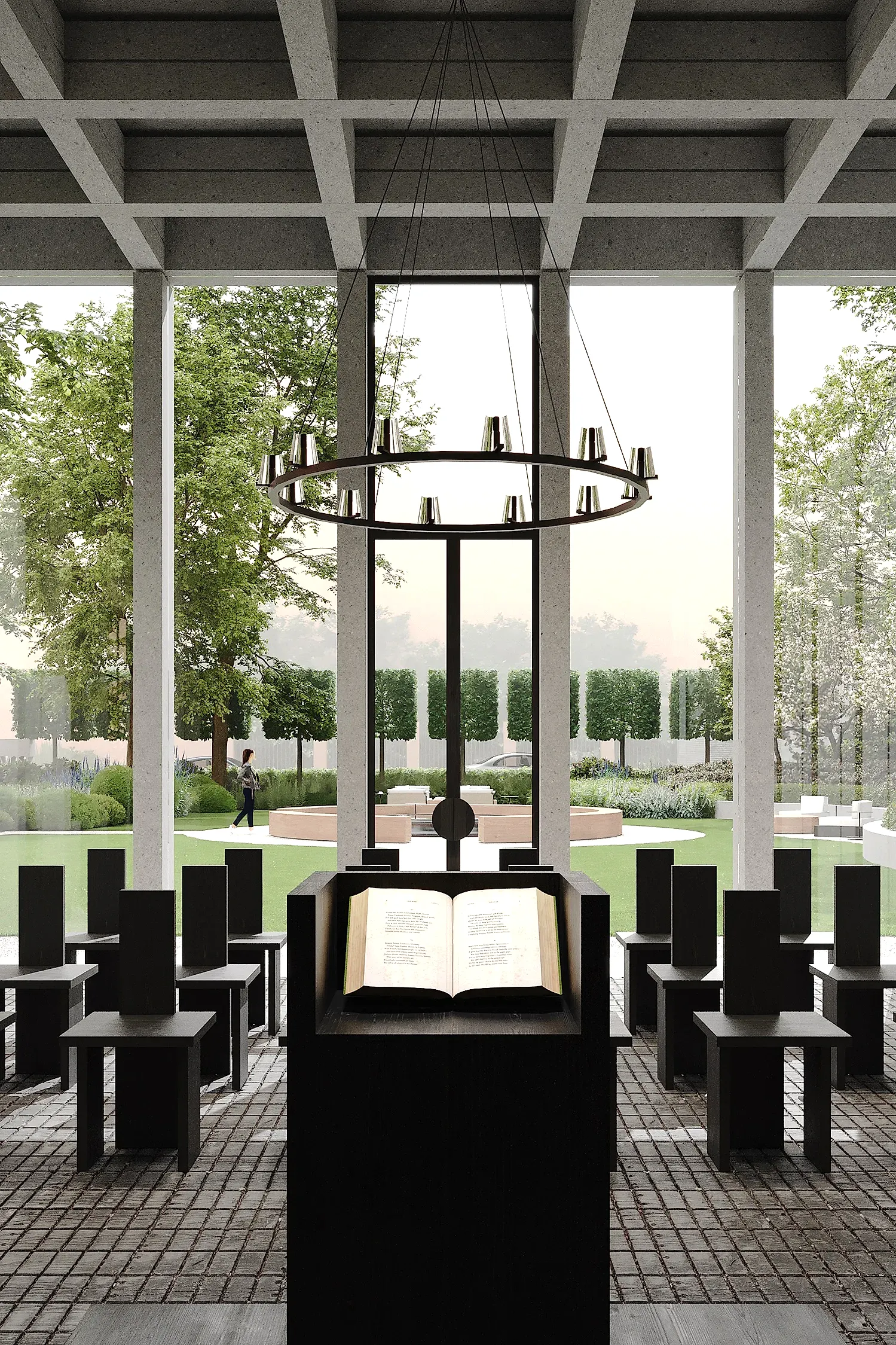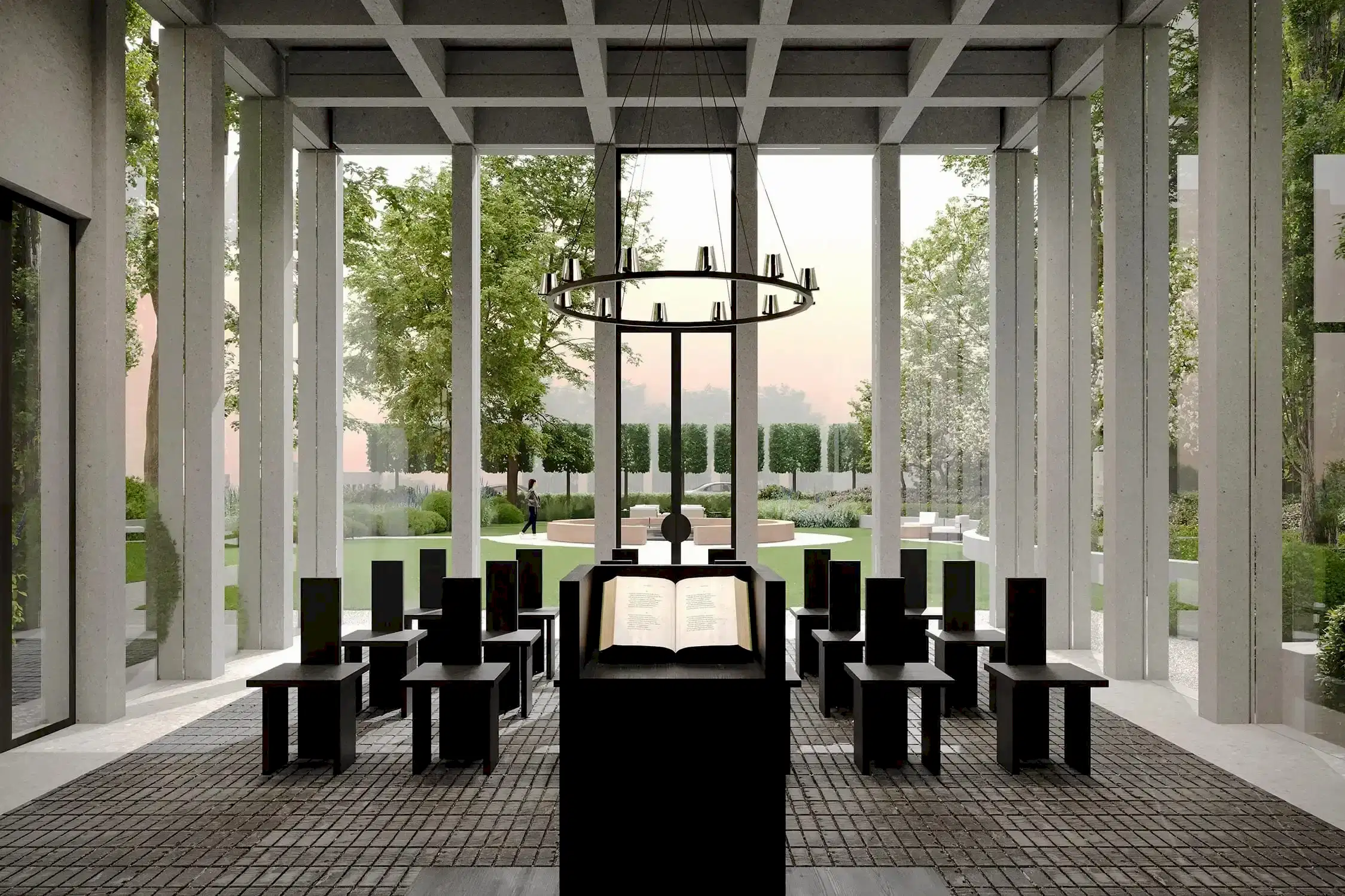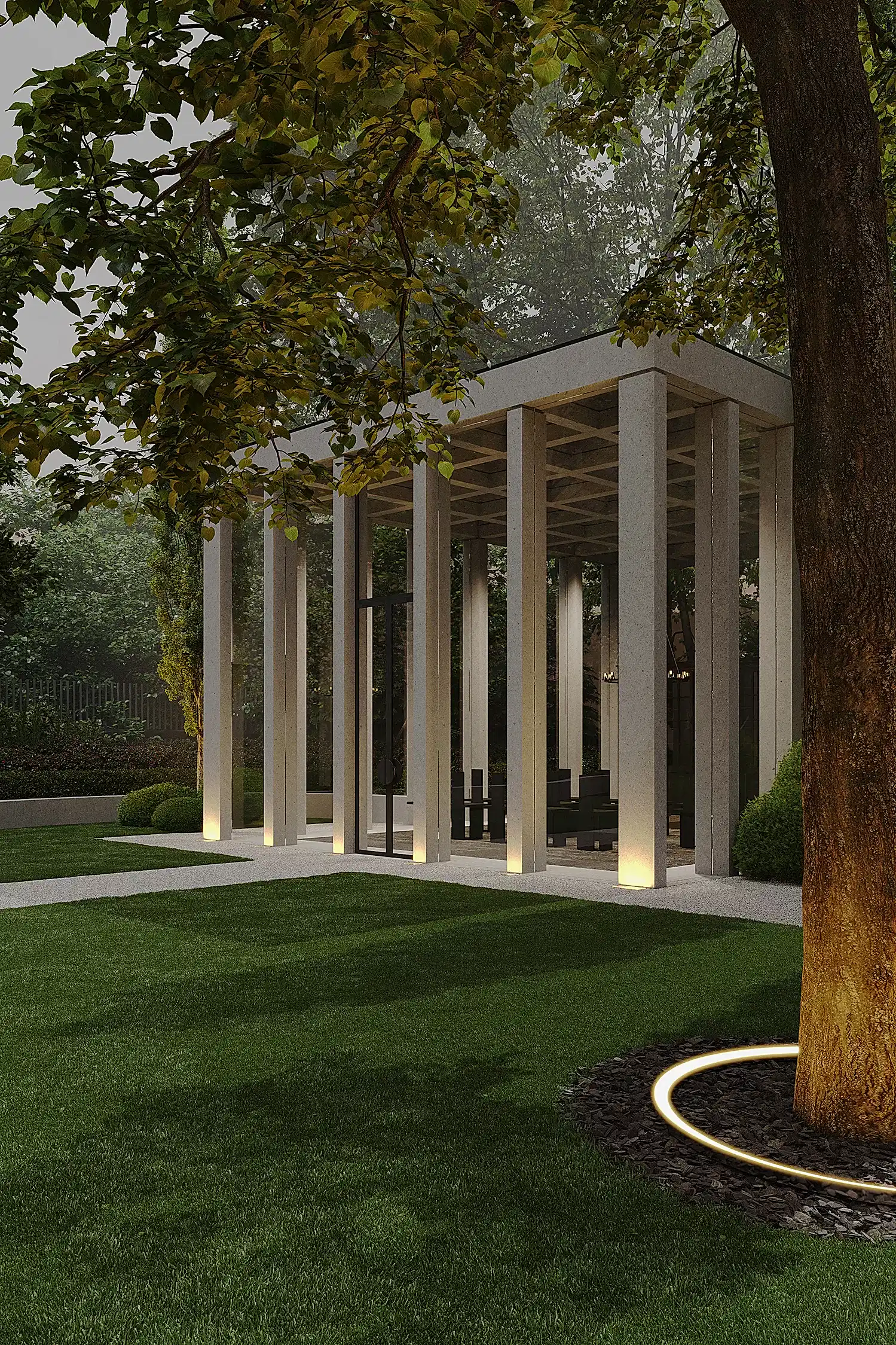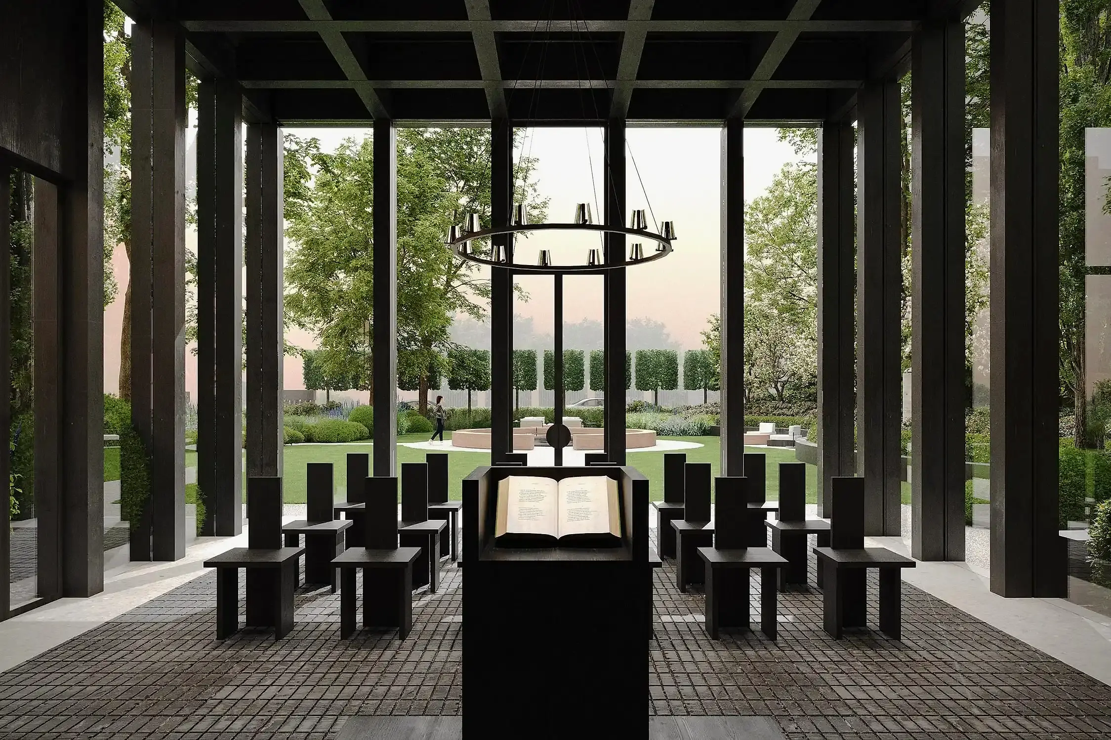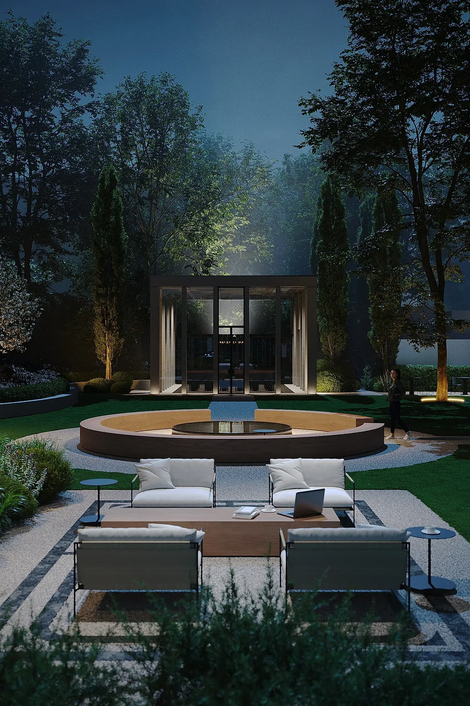 Этот сад - тот случай, когда альма-матер действительно становится местом силы. Чтобы студенты и выпускники получали поддержку своего окружения и места. В этом нам в том числе помогают сохранённые и переосмысленные объекты - взрослые деревья и фонтан. В чаше из чёрного полированного камня под водой будет Pin-Up послание для новых поколений.