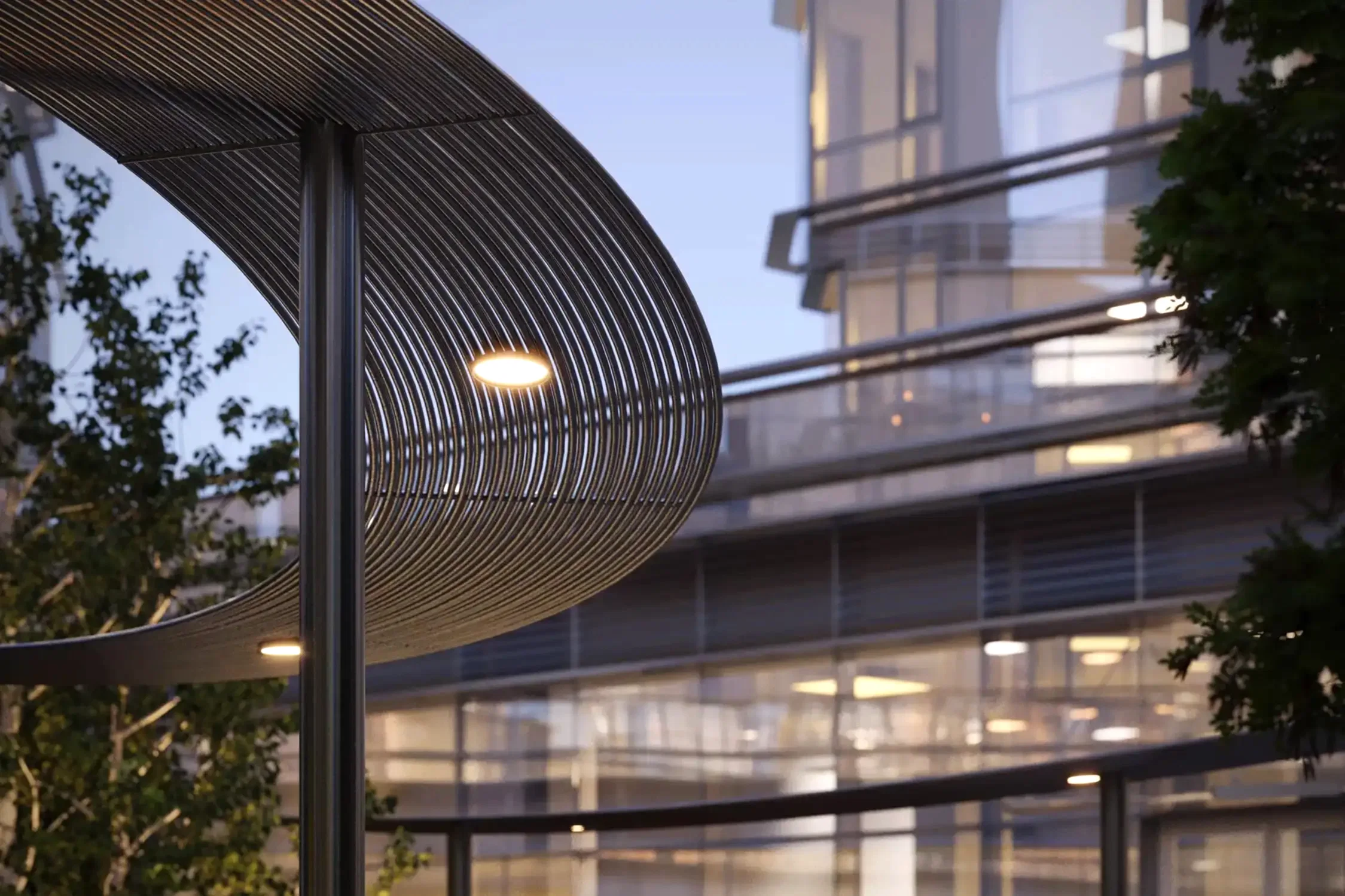 Так появились навес с качелями, освещение лентой - элементом скульптуры, устойчивые к отсутствию обилия солнца растения и система туманообразования, которая создаёт эффект прохлады, вызывает искреннее чувство любопытства и подводит к главному вопросу, который хочется задать нашему саду: «Где заканчивается лес и начинается мой дом?».