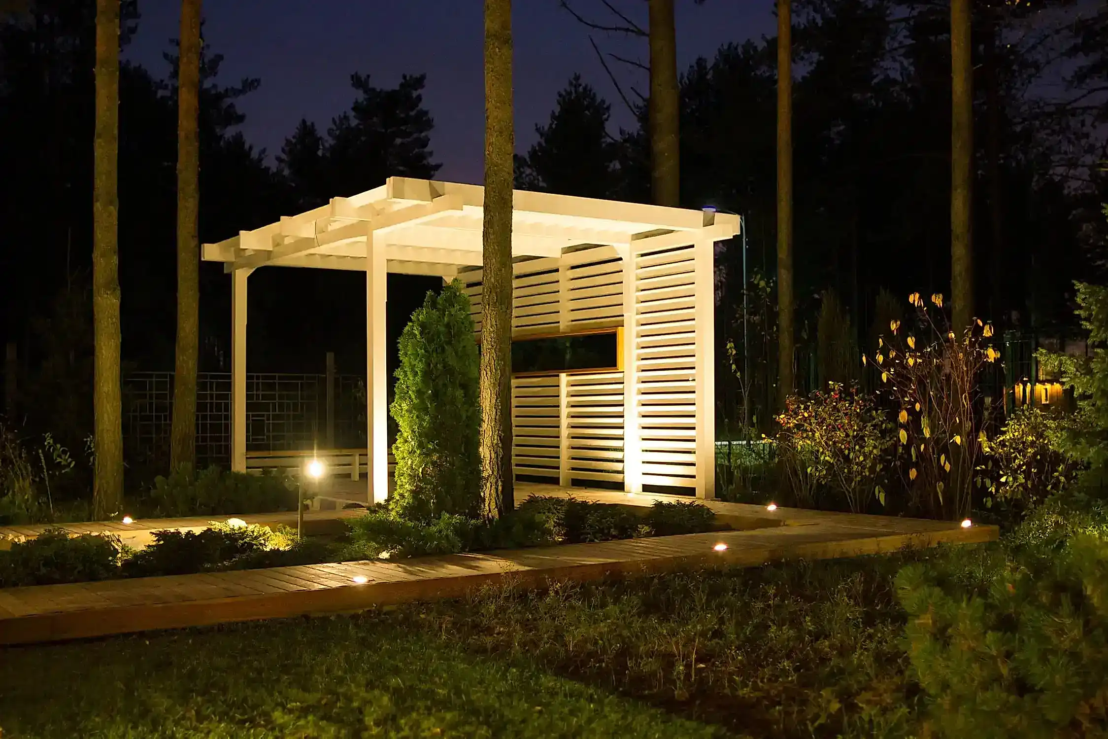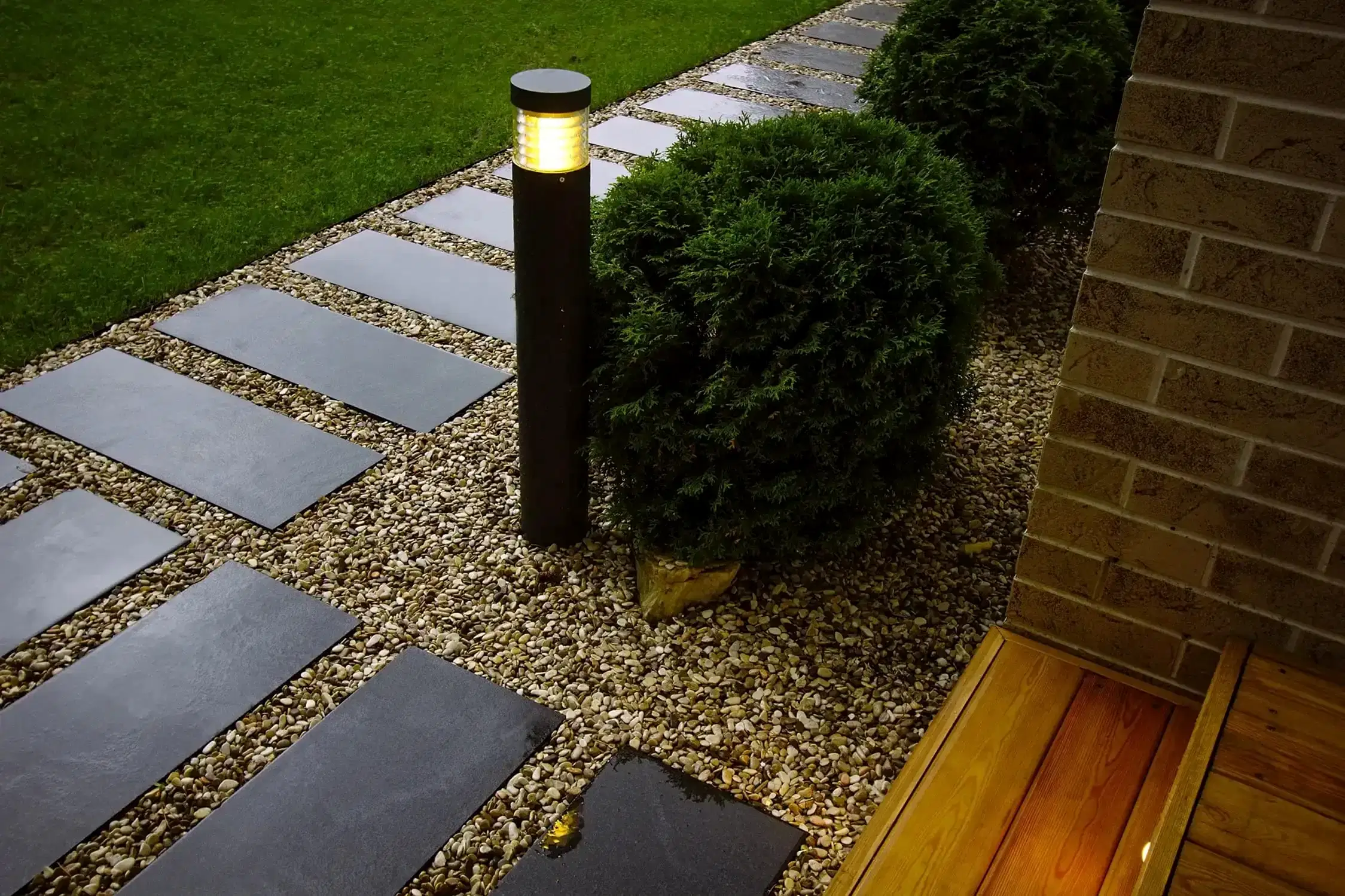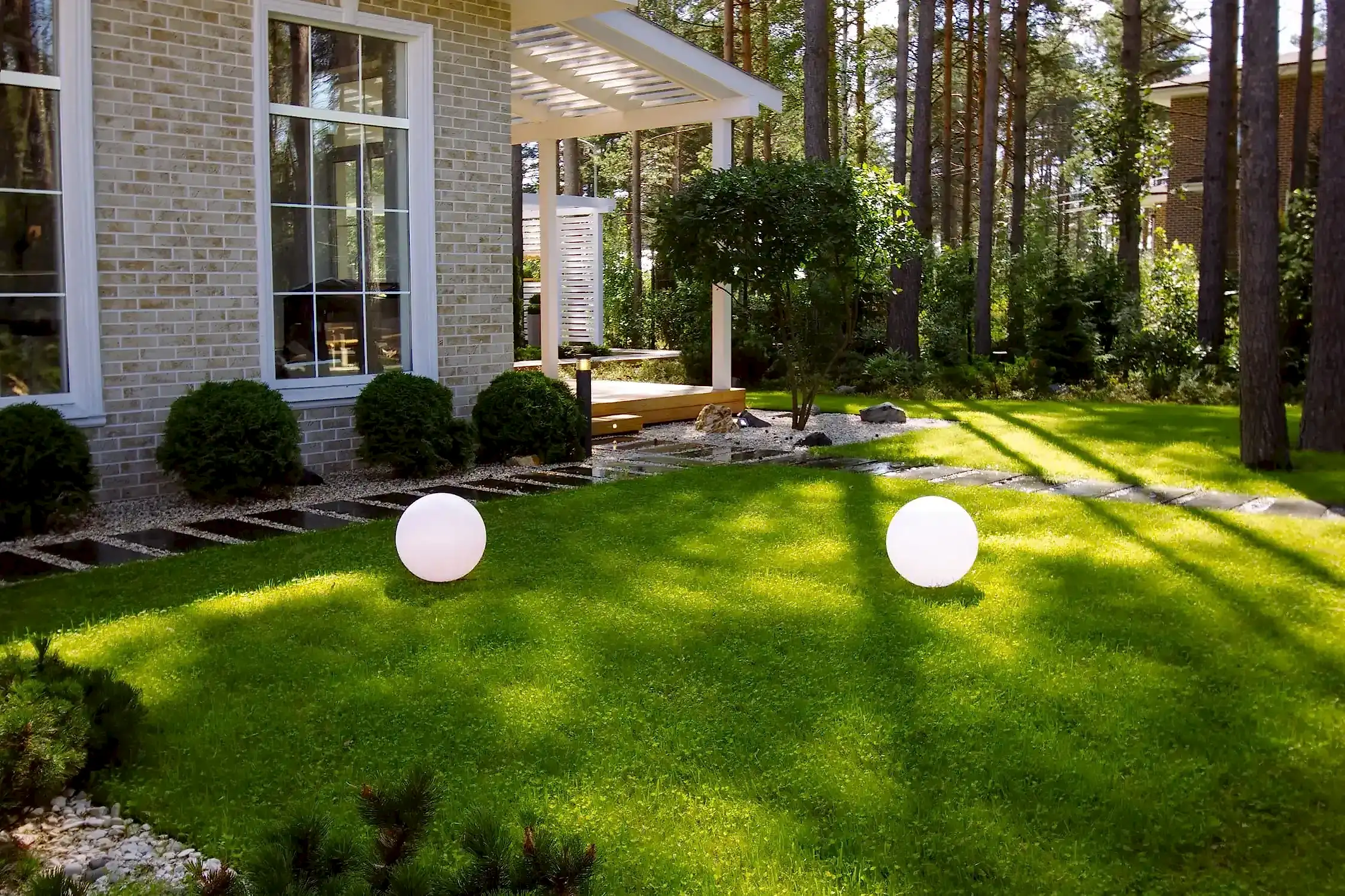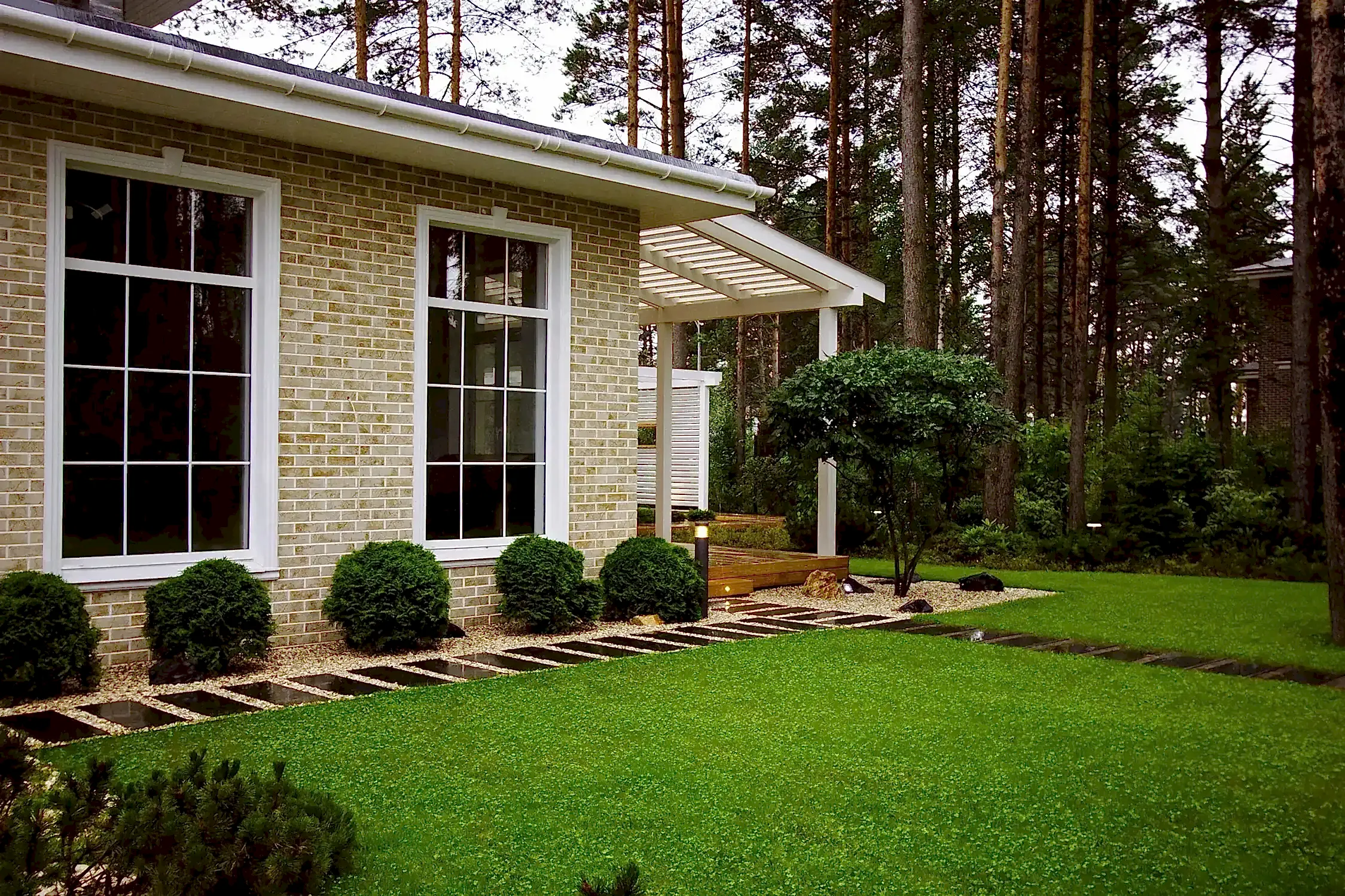 Оживлённая часть коттеджного посёлка. Угловое расположение подсказало «пригласить» на участок лес. Мы боролись за восстановление естественного покрова, и всё получилось. К нему добавили лишь молодые кедры, тенелюбивые рододендроны, брусничники с Pin-Up а также лампы «светлячки», которые приводят детей в восторг. Родители довольны, что свет на участке с диммированием и управлением.