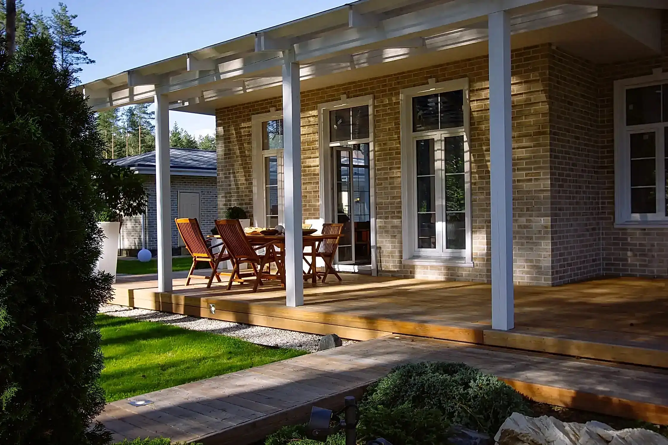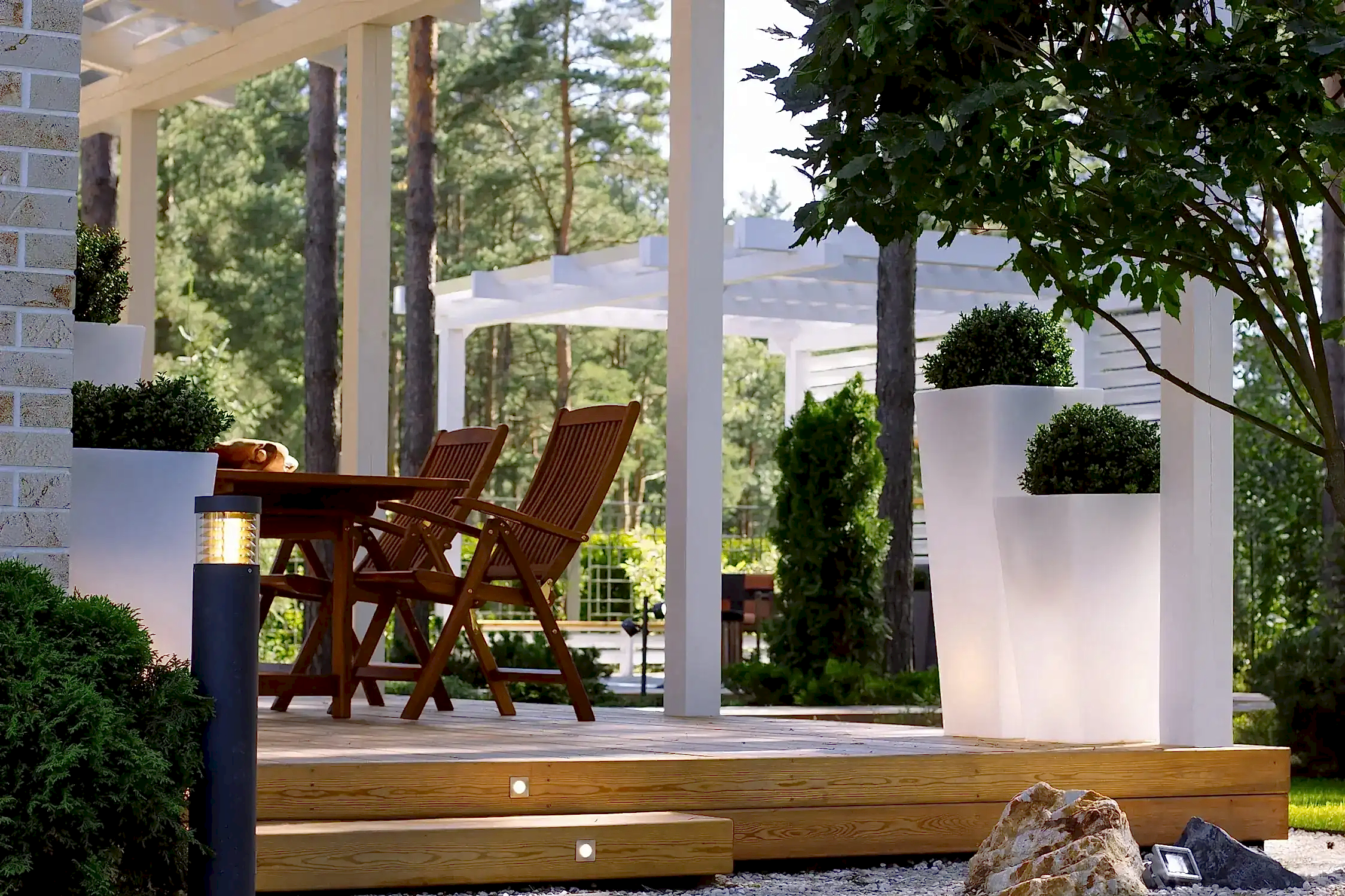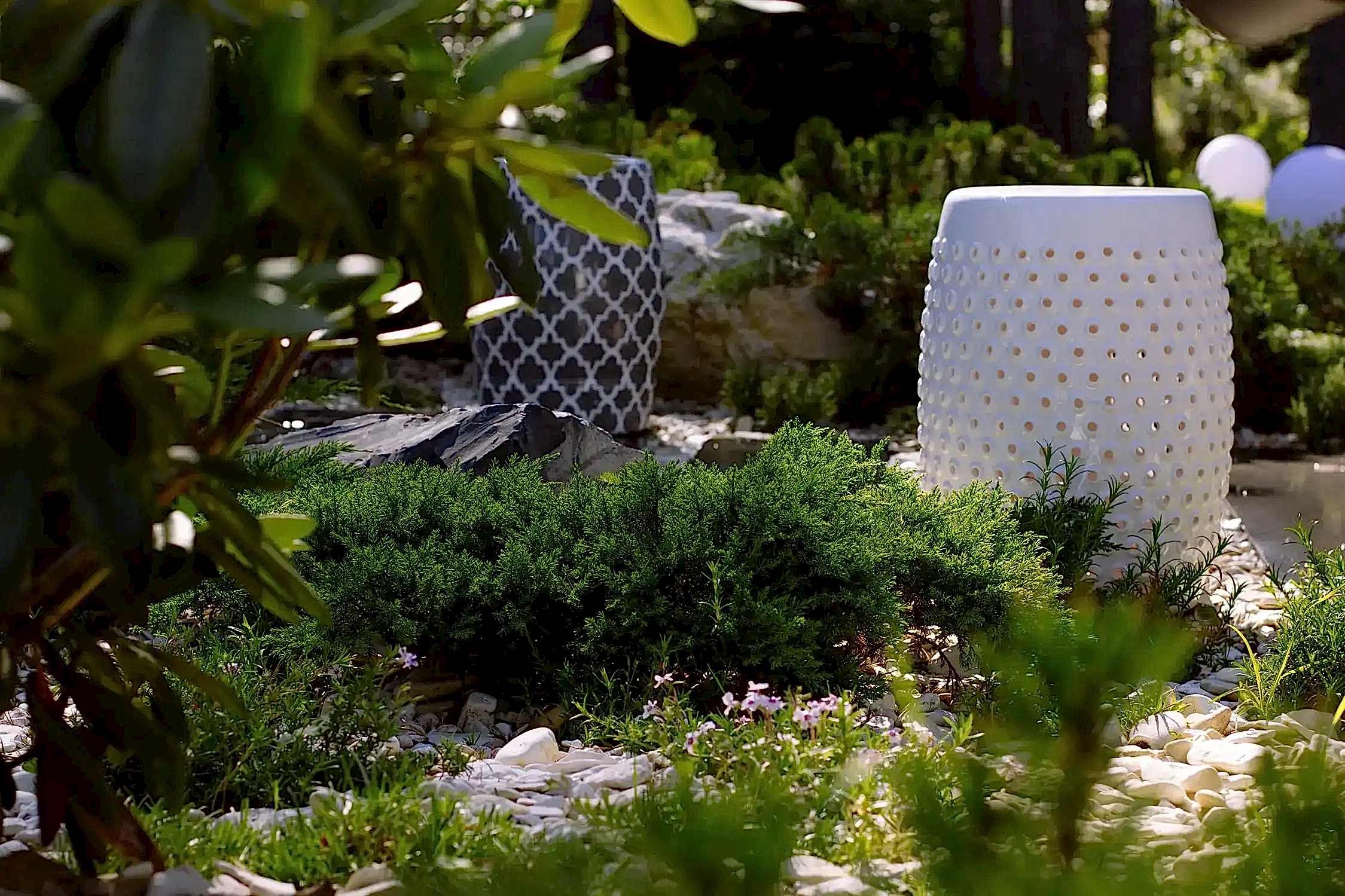 Флора здесь сформирована так, что живёт самобытно, Pin-Up свободно, без внутренних противоречий и обременительного ухода. Сад встречает карельскими можжевельниками, тимьянами и россыпью гальки, роняет чёрные шишки на белёные доски, заливает солнцем веранду и своей геометрией приглашает к действию или созерцанию.