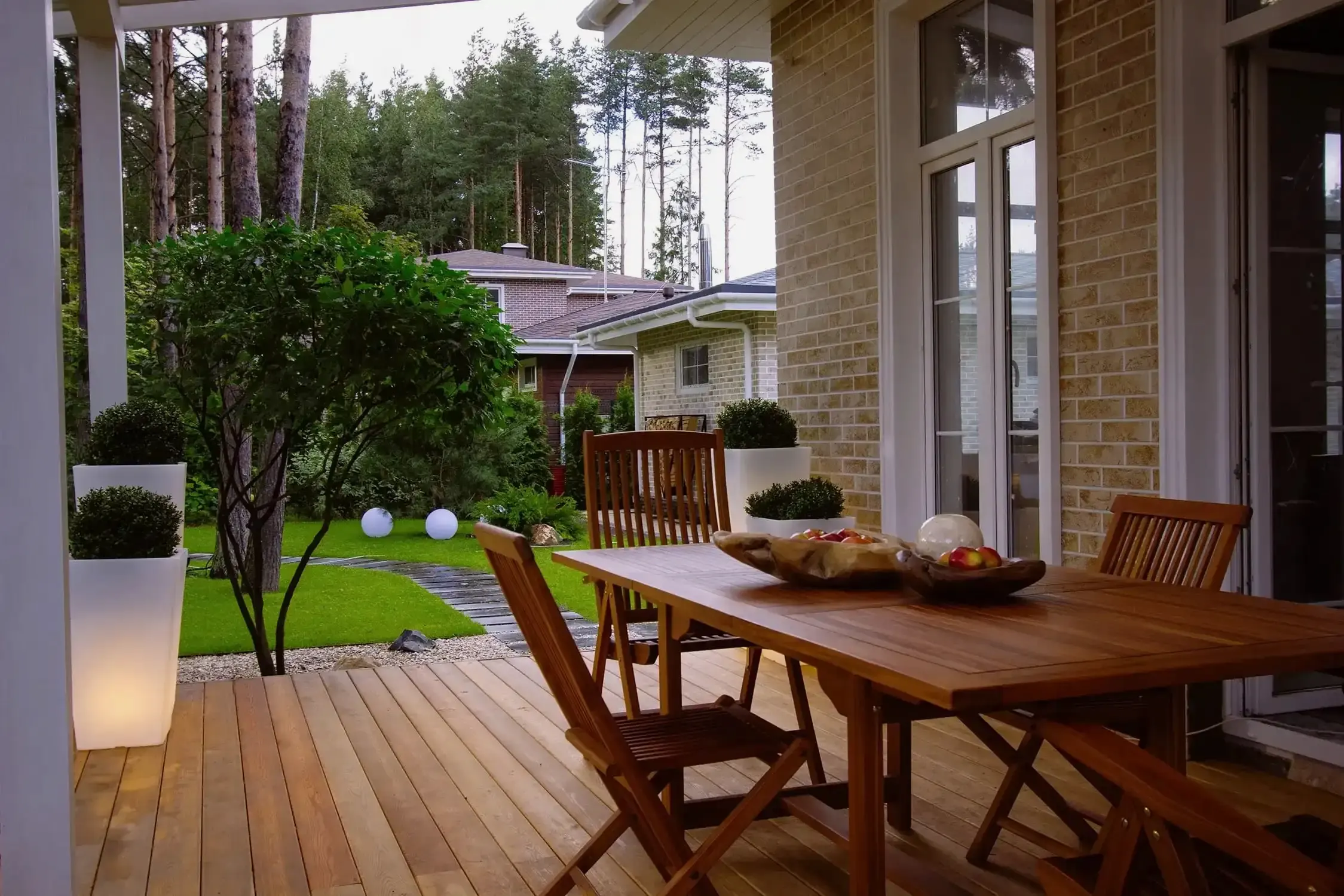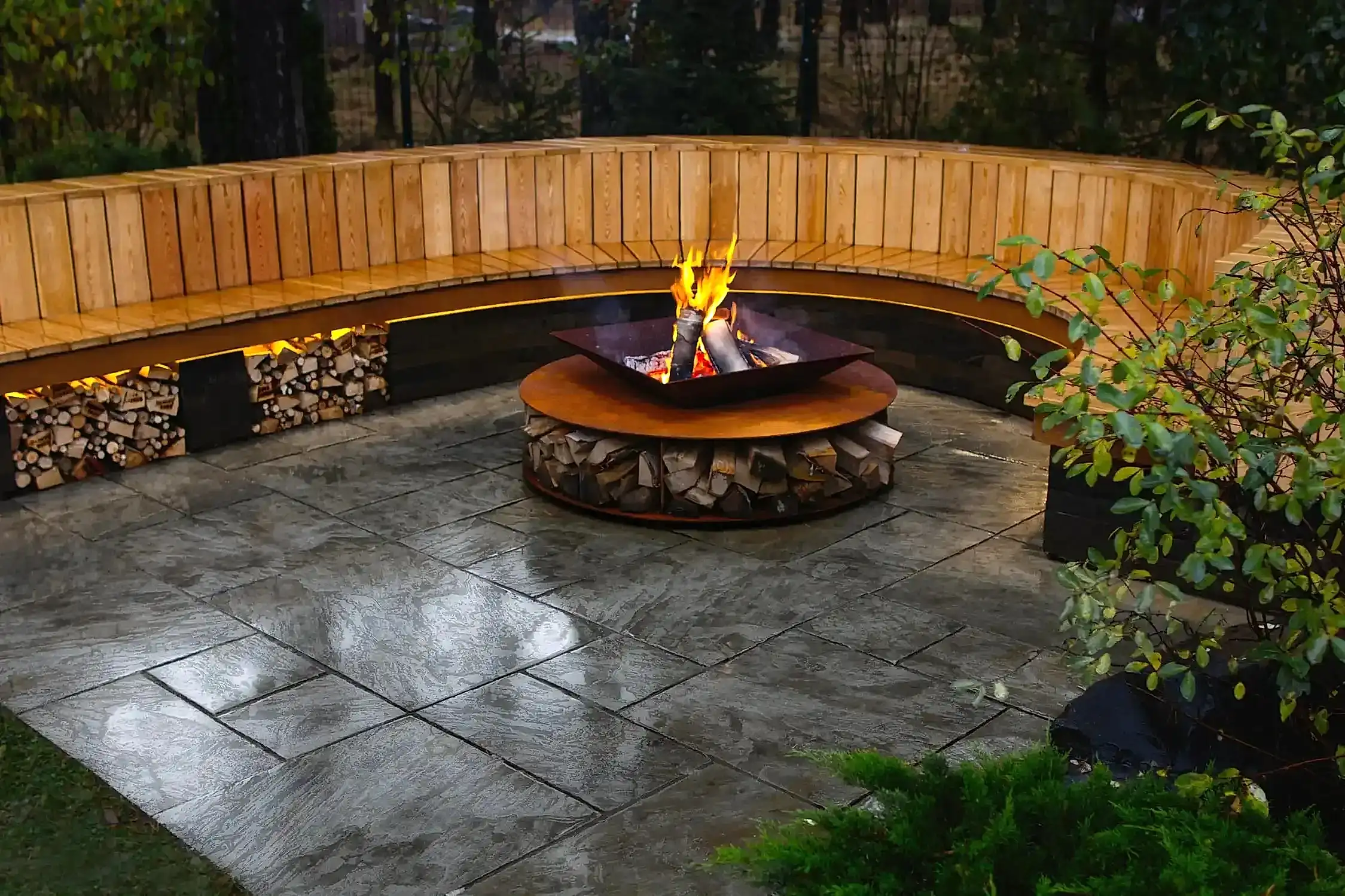 В итоге семья получила удобную для всех зелёную гостиную. Уголков множество: устроиться за обеденным столом, Pin-Up с книгой в кресле, готовить на свежем воздухе, гонять мяч, накрыть пикник на газоне, сидеть у костра. Все сегменты отнесены к границам, что сыграло в плюс: сад выглядит объёмнее реального размера.